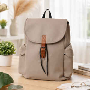 حقيبة ظهر كاجوال مع حزام غلق جلدي ، تصميم عصري مناسب للسفر و الدراسة و العمل