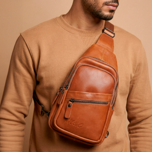 جلد طبيعي فاخر: حقيبة كروس رجالية مصنوعة من الجلد الطبيعي عالي الجودة توفر متانة استثنائية ومظهراً أنيقاً وعصرياً تصميم عملي