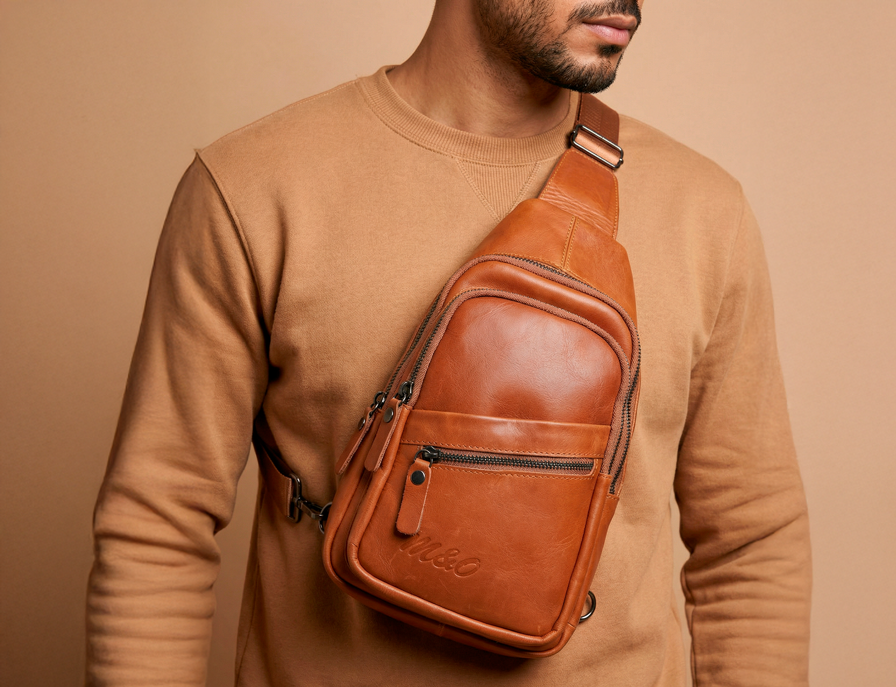 جلد طبيعي فاخر: حقيبة كروس رجالية مصنوعة من الجلد الطبيعي عالي الجودة توفر متانة استثنائية ومظهراً أنيقاً وعصرياً